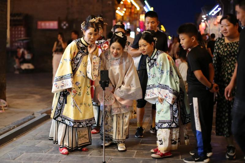 旅拍是近年来兴起的文化旅游新业态,平遥古城街头大大小小的旅拍店里生意红火,越来越多的游客选择身穿明清时期晋商服饰开始他们的沉浸式体验传统文化之旅。