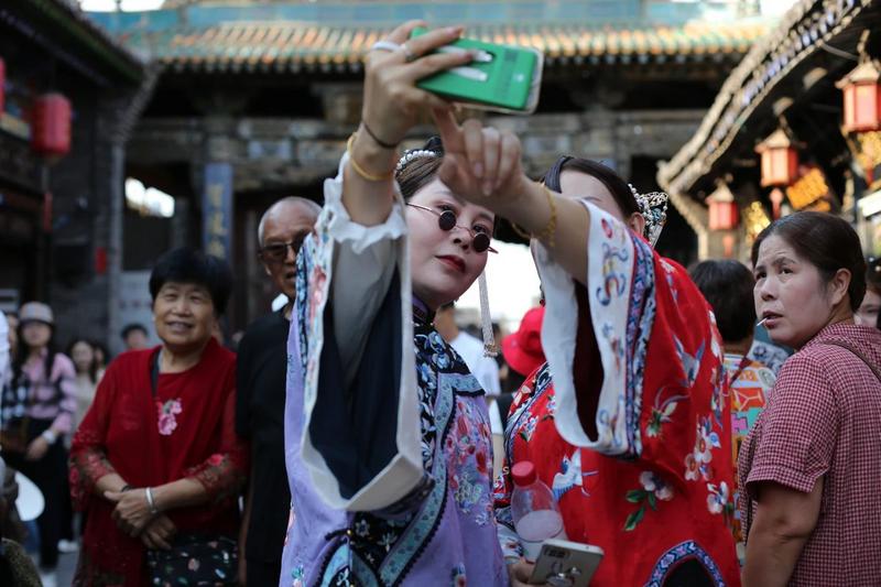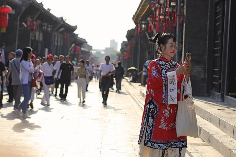 走进平遥古城,无论是在西大街、南大街等主干街道,还是宾馆客栈的实景拍摄基地,随处可见化着精致妆容的“晋商少奶奶”“晋商大小姐”,她们不仅深度体验着古城文化,也成为古城里一道耀眼的风景。