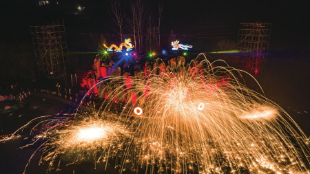 从城楼上远眺,仿佛可看到披坚执锐的将士正在严密巡视;在街道上漫步,悠扬的歌声、琴笛声弥漫在空气中,渗进了那历经千年的每一块石板、每一道墙壁。而其中最引人注目的,当属那条威武磅礴,呼风踏云的“中华炎帝第一龙”。598米长的巨型龙灯沿着街区主干道起伏而上,龙头栩栩如生、威风凛凛,龙身远远望去蜿蜒盘亘、熠熠生辉。夜幕下,伴着璀璨花灯,巨型龙灯通体华丽、流光溢彩、蔚为壮观。根据《山海经》等文献记载,炎帝是龙的化身,被尊称为“真龙”。而高平正是公认的炎帝故里,流传着神农炎帝故事的古村落历经千年,长存至今。景区以“炎黄子孙、龙行天下”为理念打造了浩大的龙灯灯会,以缅怀神农炎帝尝百草授农耕的伟大贡献。
