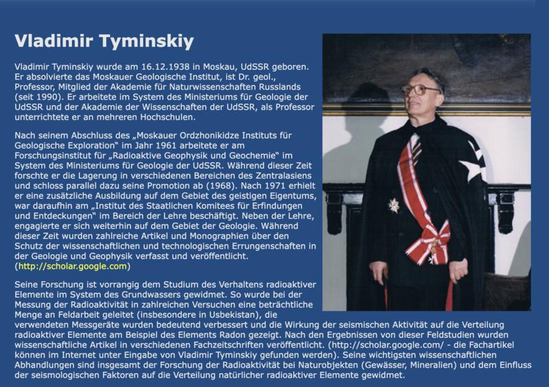 据欧洲自然科学院官网介绍,该院主席Vladimir Tyminskiy教授出生于莫斯科,曾在前苏联地质部和科学院机构工作,并在多所高校任教过。他撰写和出版了大量关于地质、地球物理学的文章和专著。他还是俄罗斯自然科学院的联合创始人和首席科学秘书(1989-2001)。