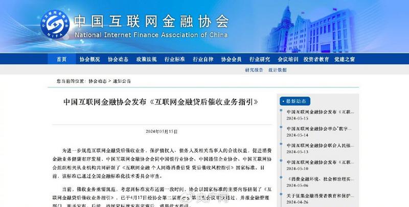 中国互联网金融协会发布的《互联网金融贷后催收业务指引》(网站截图 央广网发)