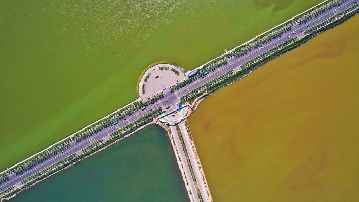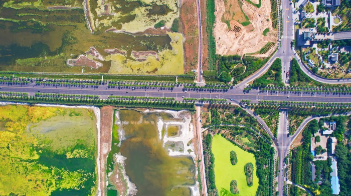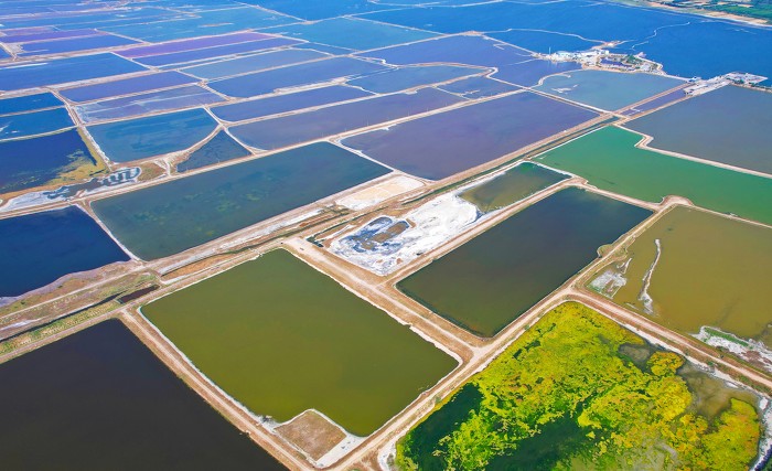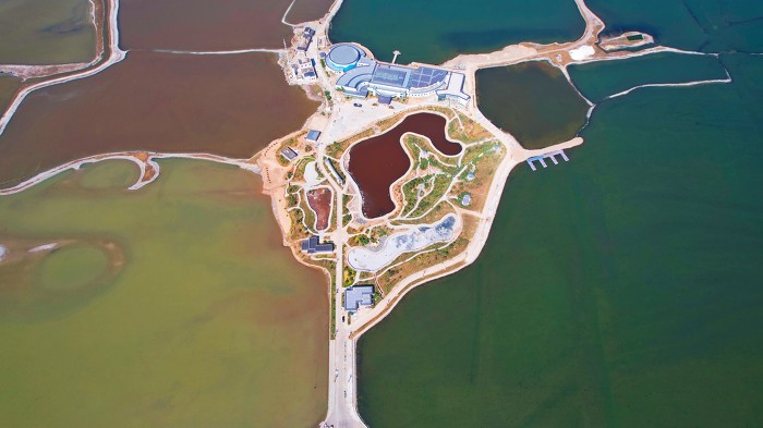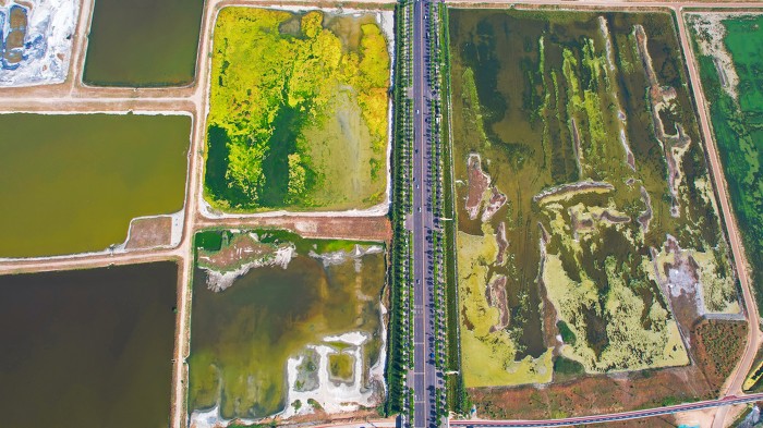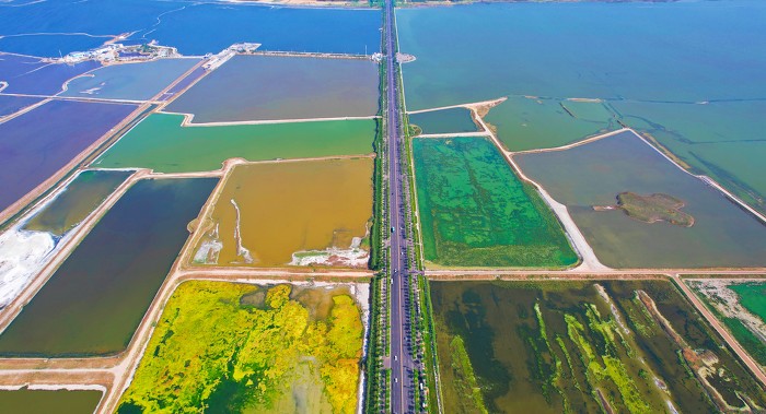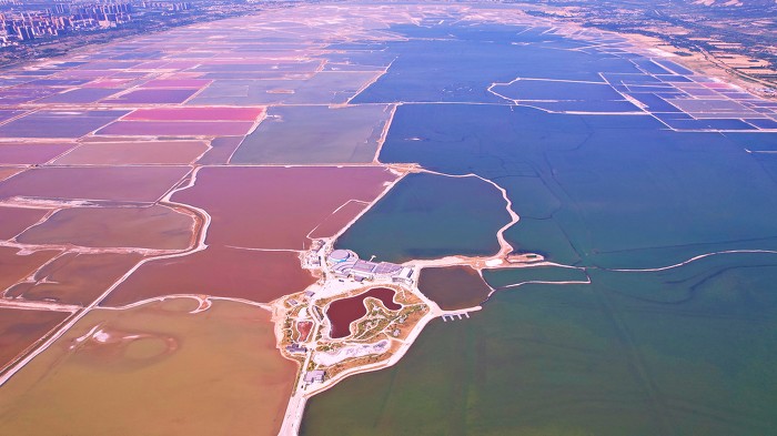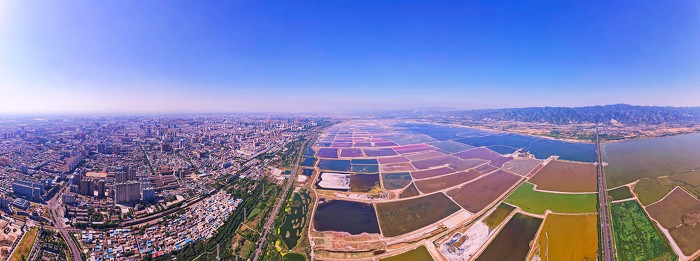 5 月 22 日,初夏时节,随着气温的不断升高,山西省运城市盐湖呈现出五彩斑斓的美丽景观。从空中俯瞰,盐湖宛若巨型大自然调色板,色彩斑斓,令人陶醉。 近年来,山西省运城市不断加大盐湖生态修复力度,盐湖从矿区、工业区变为生态保护区,生态环境持续向好。