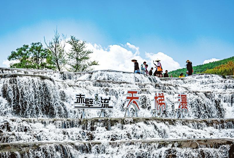 山西日报报道 5月22日,平顺县赤壁悬流景区游人如织。该景区依浊漳河而行,全长12公里,峡谷内蜿蜒曲折、云雾缭绕,独具特色的丹霞地貌、瀑布飞流,吸引周边游客前来打卡游玩。