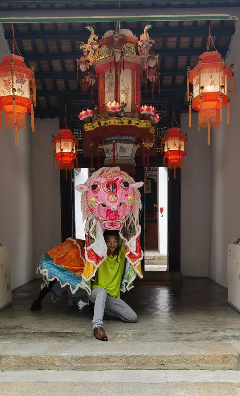 身披华彩衣、头戴貔貅帽,灵动跳跃、闪转腾挪,一招一式无不浸润着非遗传承人钟浩声的毕生心血。作为客家貔貅第六代传承人,钟浩声师承欧绍永,他热心推广舞貔貅技艺,“我打破传内不传外的传统,与非遗办事处合作,通过资助计划举办两届舞貔貅课程,完整传授舞貔貅的各项技巧、配乐等,将技艺推广到公众及青少年。”如今,钟浩声的儿子钟焯岚已继承父亲衣钵,成为客家貔貅第七代传承人。钟浩声表示,希望通过自己及子女的传承,让这项技艺进一步走入公众视线,激励更多人尝试学习舞貔貅,将优秀的中华传统文化发扬光大。