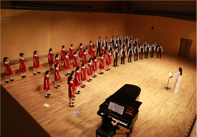 之后,合唱团又奉献了“心声绽放”和“一路声花”两个单元。孩子们的歌声悠扬曼妙、轻盈质朴,通过《那段时光》《西风》《如果明天就是下一生》和《城里的月光》四首曲目,让观众静静聆听、默默怀想,体悟拼搏奋斗的青春年华、清幽淡然的古风意蕴、珍惜当下的深刻寄寓和坚韧追梦的温暖力量。最后的篇章汇集了世界各地极具地域特点的作品,歌词语言囊括英文和拉丁语,不仅展现了团员们卓越的音乐素养和多元文化的表现力,更表达了他们胸怀大志的大国情怀。《Dona Nobis Pacem》《The Holiday Tango》《Enter With Song》三首歌曲充满异域风情,节奏明快、欢欣鼓舞,小军鼓的加入更为音乐会增添了行进的动感,振奋人心。就像歌词中的“来吧,伴着歌声,让我们纵情歌唱,对世界敞开心扉”,音乐会在热烈的气氛中落下帷幕。