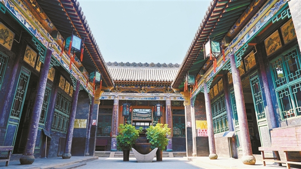 曹家大院占地面积10600平方米,坐北朝南,现存均为明清遗构。大院由内宅、外宅两部分组成,内套15个小院、3个倒座楼、3个厅堂、3个主楼,共277间房舍。内宅由3个穿堂大院的堂楼连在一起拔地而起,蔚为壮观,楼顶有3个榭亭,飞阁凌空,数里外可见;外宅有书房院、小戏台院、客房院、厨房院和药铺。内外宅中间有一条石条砌成的甬道相隔,楼院四周围有高大的砖墙,宛如城堡。建筑布局呈篆书“寿”字形,其间,砖雕、石刻、木雕、彩绘、斗拱、飞檐、兽头等装饰物别致精美,五蝠捧寿门、松鼠戏葡萄栏板均为艺术佳品。