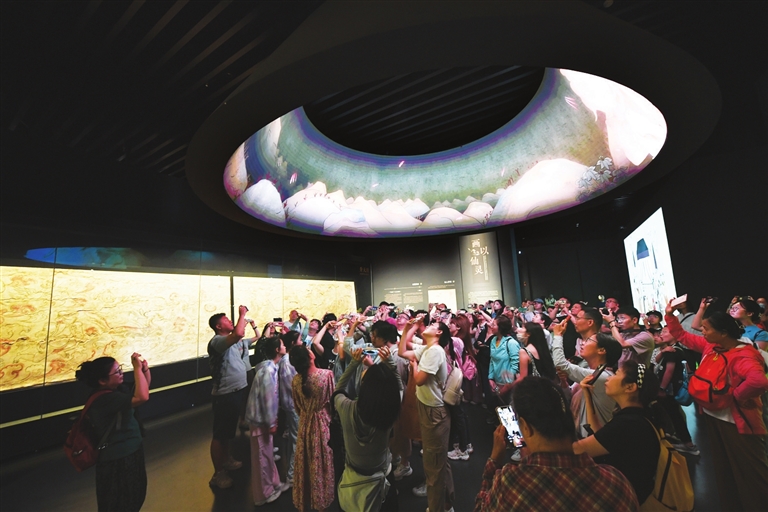 “这里可真好玩!”第一次来打卡的吴先生惊喜地说。吴先生来自吉林,每到一地,都要打卡当地的博物馆。这次带着孩子来太原,他首选太原北齐壁画博物馆,体验感特别好。馆里融入了很多科技元素,在展陈方式上更具有贴近性和互动性,使公众在参观和体验感上获得最大满足。所以“玩”在博物馆,绝不是一句空话。