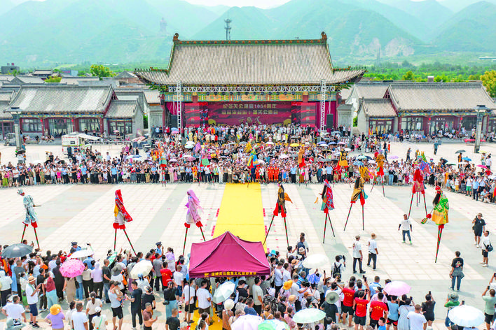 山西日报客户端综合报道 7月29日(农历六月二十四),是关公诞辰1864周年纪念日。为传承和弘扬关公文化,7月28日,纪念关公诞辰1864周年暨常平村第十届关公庙会开幕式举行,来自全国各地的游客、信众、关氏后裔与本地群众数万人,齐聚常平关公文化广场,同颂千秋忠义,共庆关公诞辰。