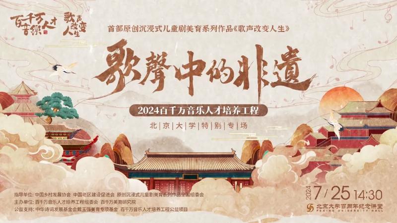 山西日报记者王秀娟报道 近日,由中国乡村发展协会、中国老区建设促进会、中华诗词发展基金会、原创沉浸式儿童剧美育系列作品全国组委会作为指导单位,百千万音乐人才培养工程组委会、百千万美育研究院主办的《歌声中的非遗》——2024百千万音乐人才培养工程北京大学特别专场,在北京大学百周年纪念堂隆重举行。
