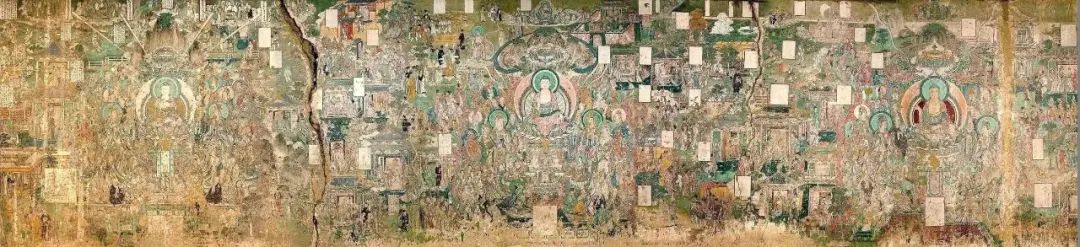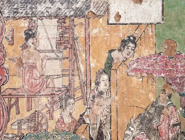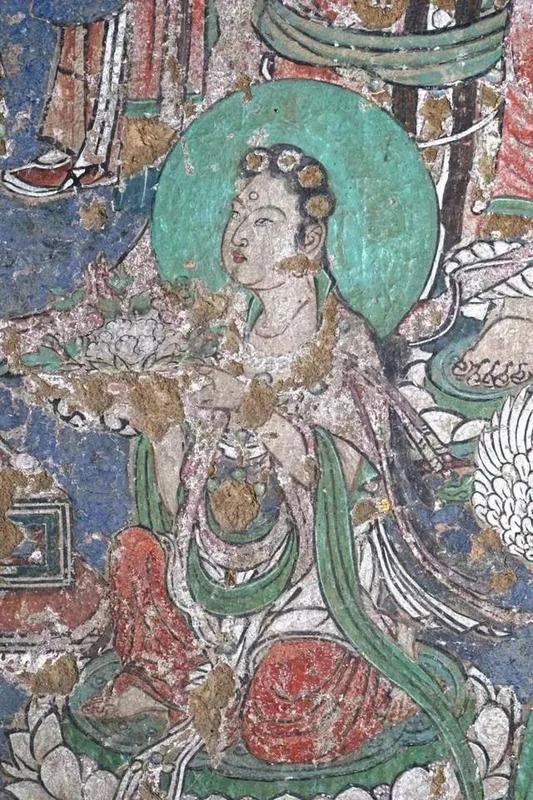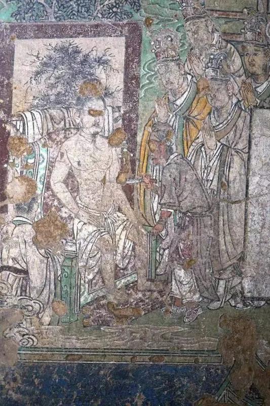 沿墙壁行进观画,宋代民居、民服、民生等社会风貌徐徐上演。士农工商、僧尼盗匪各异形象跃然而出。历经千年,石绿、石青、石黄、珠票、银珠、深红、金箔等矿物质传统颜料仍未完全脱落,整个画面金碧辉煌、绚丽多彩。而在三面壁画映衬下,端坐正中的佛像愈发宝相庄严。