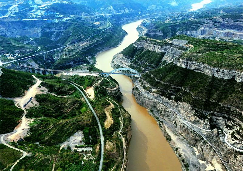 ▲在晋陕峡谷南端,滔滔黄河从上游奔流直下,仅从38米宽的石崖中泄出,故而得名