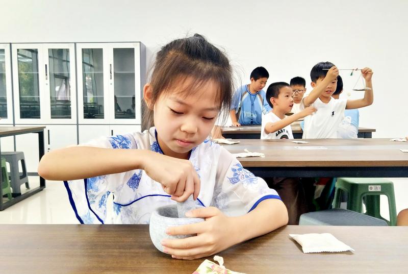 8月21日,在长治平顺县上党中药材专业镇科普研学多功能教室,小学生们正在学习制作中药香囊。在工作人员的指导下,他们亲手碾药、称量、装药、制包,在体验中进一步激发了对中药材兴趣。“今天我做了一个防蚊的香包,它里边放了冰片和艾草,可以防蚊。”小学生徐歆诺高兴地说。