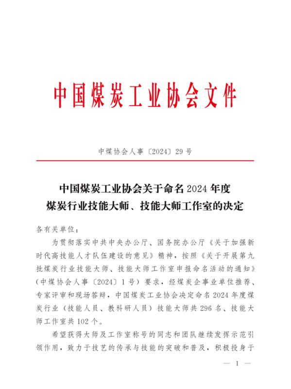 据悉,煤炭行业技能大师是煤炭行业各岗位涌现出的杰出代表,是煤炭行业高技能人才的突出典型。经各煤炭企事业单位推荐、行业专家评审、现场答辩三个环节,最终由中国煤炭工业协会研究决定命名。称号命名旨在表彰和宣传在科技创新、培训研修、项目攻关、技术革新、技艺传授、技能推广、人才培养等方面表现突出,业绩优异,为煤炭行业高质量发展作出突出贡献的优秀高技能人才。