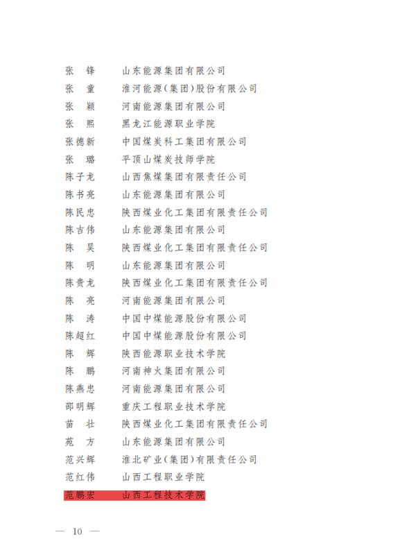 山西日报客户端综合报道 近日,《中国煤炭工业协会关于命名2024年度煤炭行业技能大师、技能大师工作室的决定》(中煤协会人事〔2024〕29号)公布,山西工程技术学院矿业工程系教师范鹏宏博士被命名为煤炭行业技能大师(教科研人员)称号。这是山西工程技术学院教师首次获得此项荣誉,也是行业协会对该学院长期服务煤炭行业的高度认可。