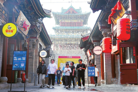 山西日报记者李兆民报道 9月22日,游客正在太原钟楼街的小街小巷里游览。老街承载着无数记忆,古色古香的建筑散发出独特魅力。