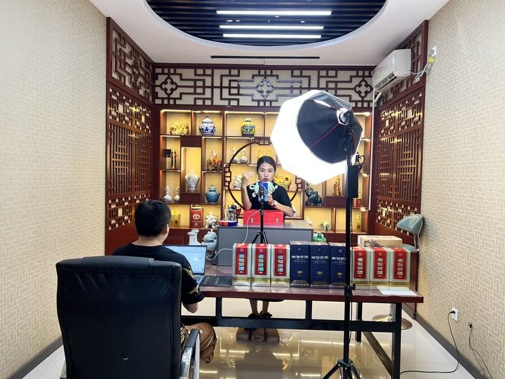 走进杏花村镇东堡村乡村e镇,琳琅满目的白酒产品摆满直播间,主播们滔滔不绝地推介,后台下单、发货有序进行着,直播间变身产品线上“体验店”,网络“高速路”正把杏花村各类白酒推向全国各地。