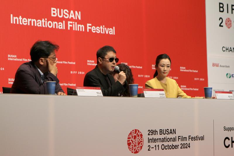 《风流一代》釜山电影节新闻发布会,釜山国际电影节电影副执行委员长朴道信担任主持,贾樟柯、赵涛出席