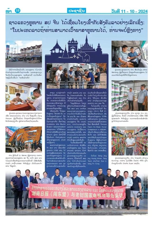 10月11日,老挝党中央机关报《人民报》刊发整版新闻报道,介绍老挝湘商发展以及湖南日报《闯东盟·丝路上的湘商》大型融媒报道情况。