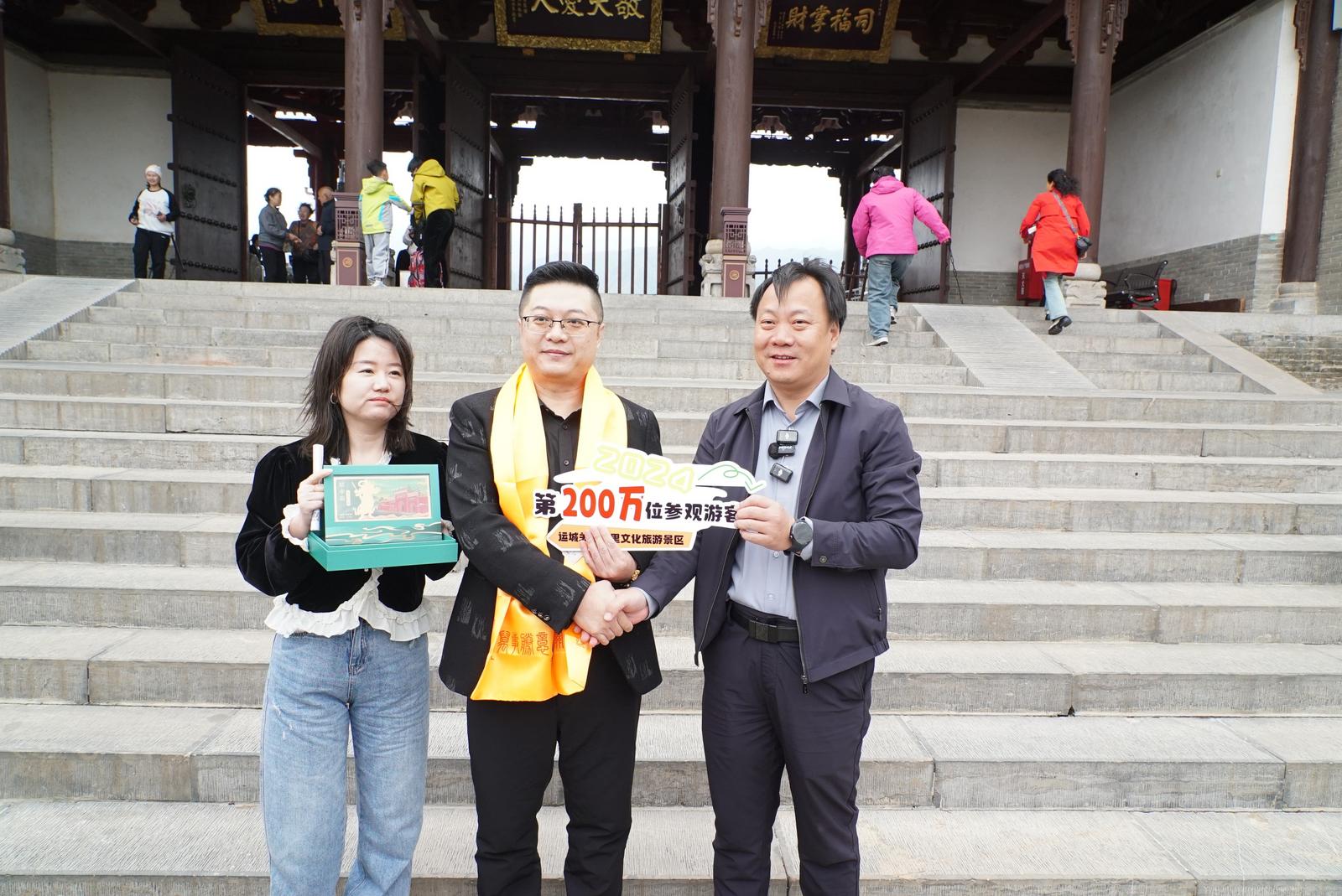 “非常高兴能成为景区第200万位游客。”赵先生感动地说,“这次来发现景区变化很大,设施更加完善,服务更加优质,衷心希望景区越办越好。”景区领导发表了简短而热情的欢迎词,并为他们颁发了精心准备的纪念品,包括《关公福佑——贵宾门票》和一条銮巾。