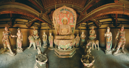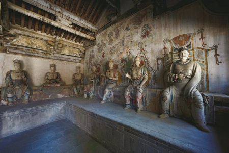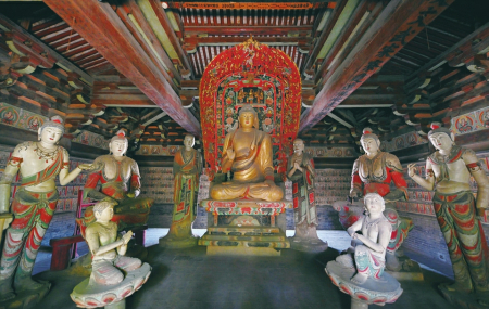 五台佛光寺东大殿唐代彩塑刻画入微,体态丰满,展现了唐代彩塑的高超技艺。