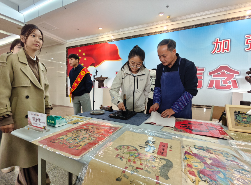 “绛州木版年画作为一种古老的民间艺术,它诞生于北宋,经历金、元,在明清两代迅猛成长,清后期达到鼎盛,前后延续了千余年,成为中国绘画史上不可或缺的一部分,不能让祖上传下来的技艺断了。”58岁的省级非物质文化遗产传承人郭全生,对于新绛木版年画的传承与保护,他有着强烈的使命感,他手中拿着一块精美的木版,向同学们展示着如何均匀地上墨,然后将宣纸轻轻覆盖,再用棕刷仔细地刷动,一幅色彩鲜艳、寓意吉祥的年画便渐渐呈现出来。