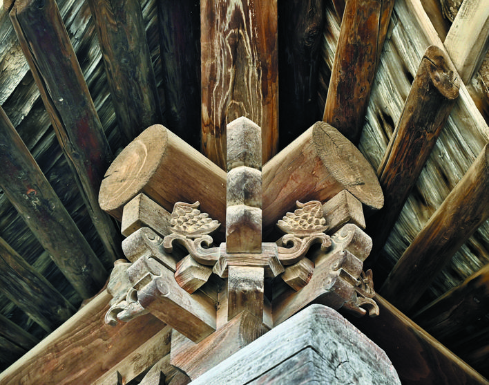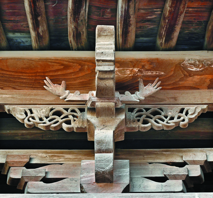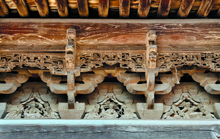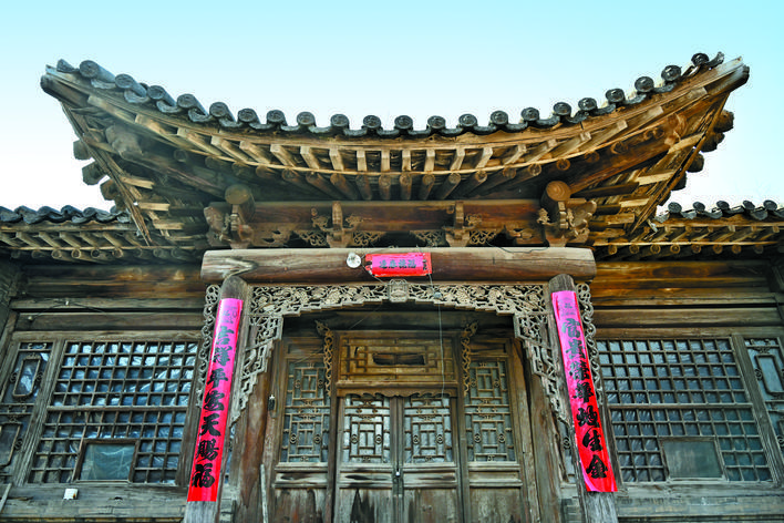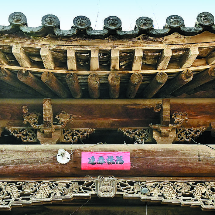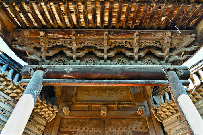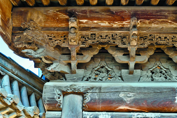 斗拱是中国木构架建筑结构的关键性部件。将屋檐的荷载经斗拱传递到立柱,其起着装饰构件和传递荷载的作用。早期的斗拱主要是结构上的作用,后来则逐渐演变为装饰。明清时期,忻州市境逐渐从“晋北锁钥”的军事重镇过渡发展成为“万里茶道”的商旅通道,商业贸易促进了工商业迅猛发展,催生了居民对居室豪奢美观的需求。忻州民居也由传统单纯注重实用的特点,变革为注重木结构繁华的样式雕饰。斗拱赋予了更多的人文精神,展现出独特的文化内涵。(胡 炜)