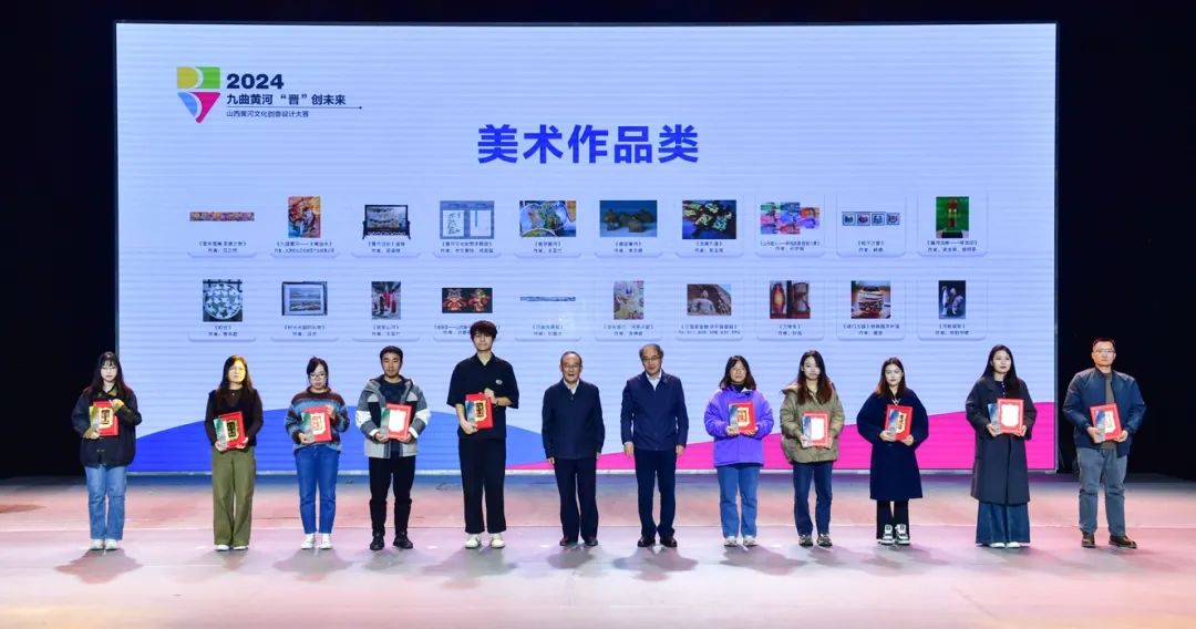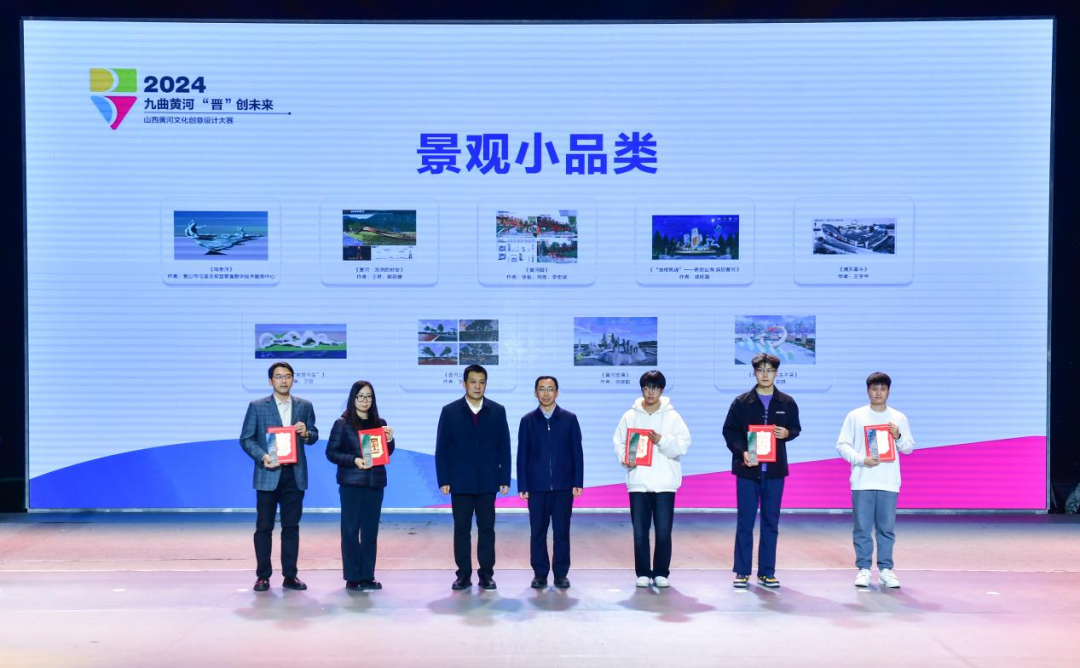 本次大赛汇集了来自中央美术学院、山西大学、太原理工大学等高校及全国设计团队的优秀设计者,他们通过富有新意与温度的精品力作展示了母亲黄河的文化之美、生态之美、艺术之美。最终评选结果为主题Logo类一等奖1件,二等奖3件,三等奖5件,优秀奖10件;美术作品类一等奖1件,二等奖3件,三等奖6件,优秀奖10件;景观小品类一等奖空缺,二等奖3件,三等奖2件,优秀奖4件。