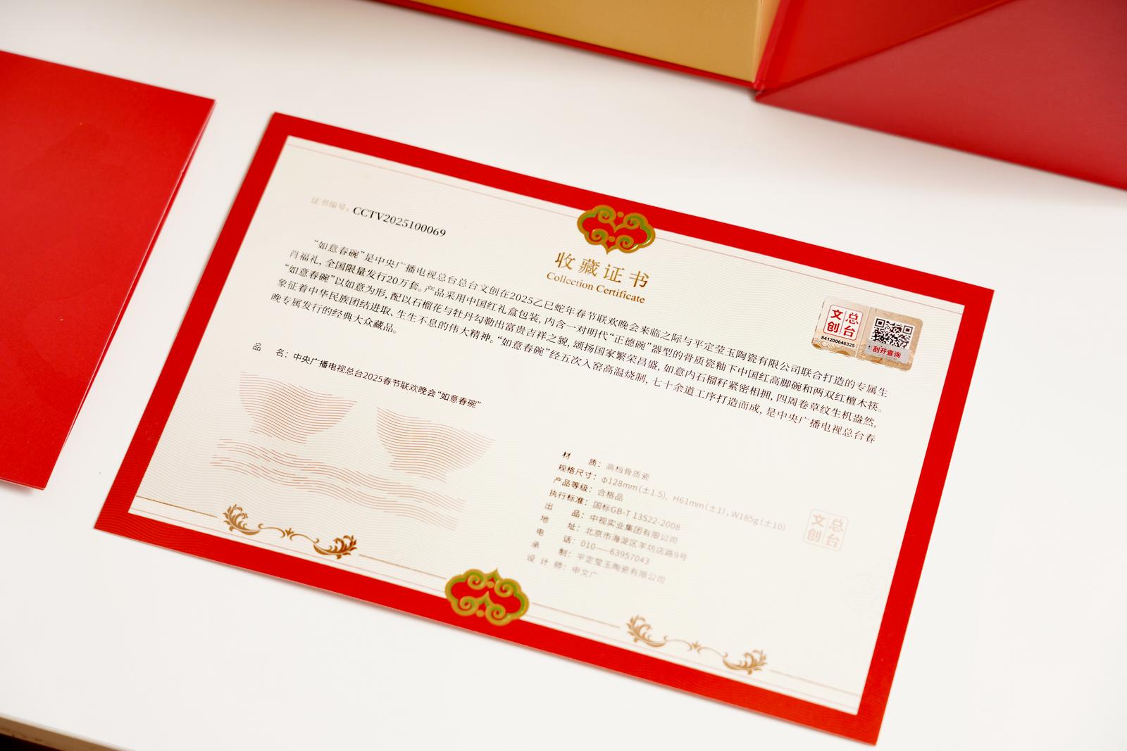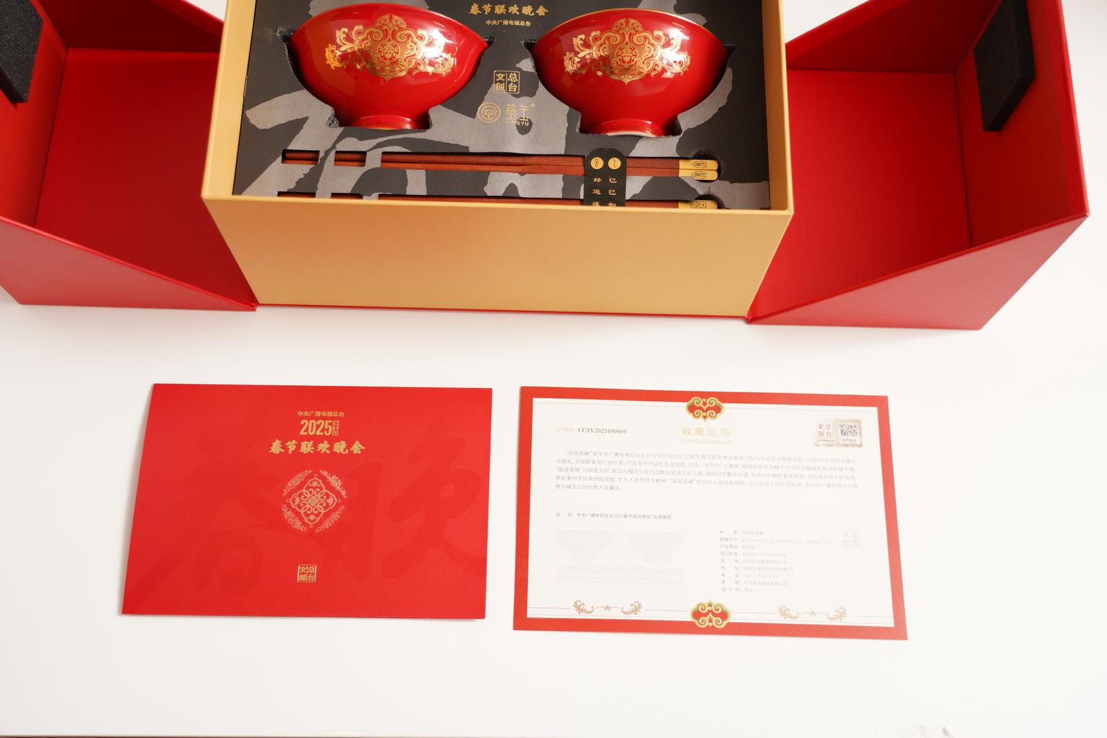 平定莹玉陶瓷有限公司总经理岳彦庆介绍,“如意春碗”“福满四季摆盘”是中央广播电视总台旗下的文创总台与平定莹玉陶瓷有限公司联合打造的乙巳蛇年央视春节联欢晚会专属生肖福礼、专属新春福礼,全国发行量分别为20万套、12万套。