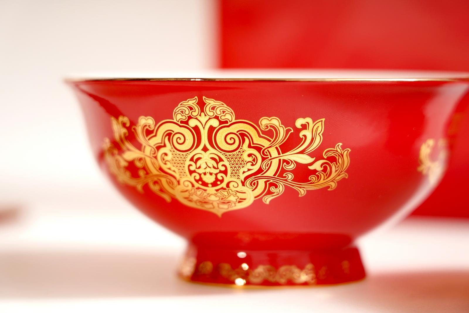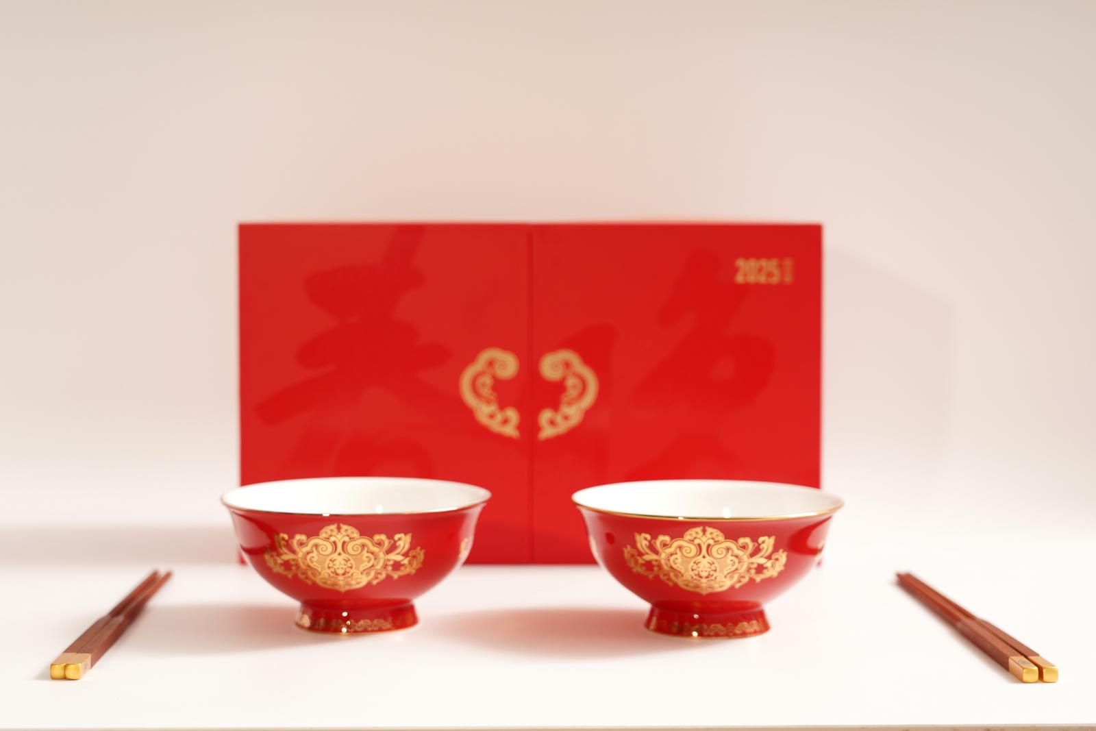 “如意春碗”器型采用明代“正德碗”造型,高脚设计。产品材质延用骨质瓷高温釉下“中国红”。花面设计以如意为形,配以石榴花与牡丹,勾勒出富贵吉祥纹样,颂扬国家繁荣昌盛。如意内石榴籽紧密相拥,四周卷草纹生机盎然,象征着中华民族团结进取、巳巳如意、生生不息。“如意春碗”经5次入窑高温烧制,70余道工序打造而成。