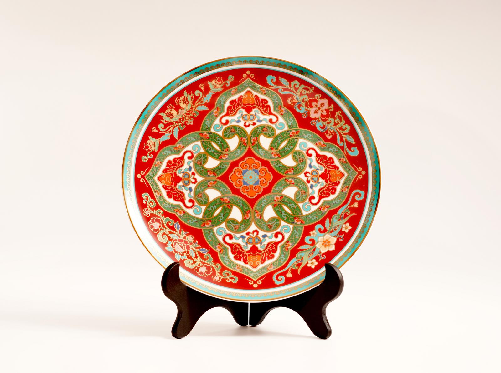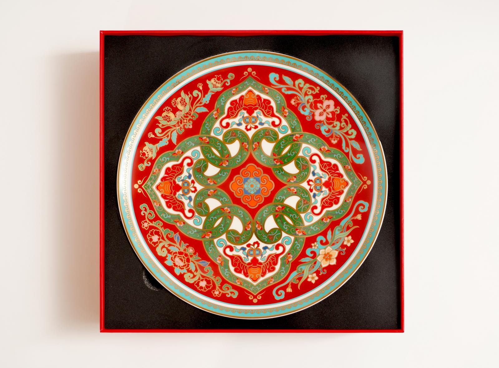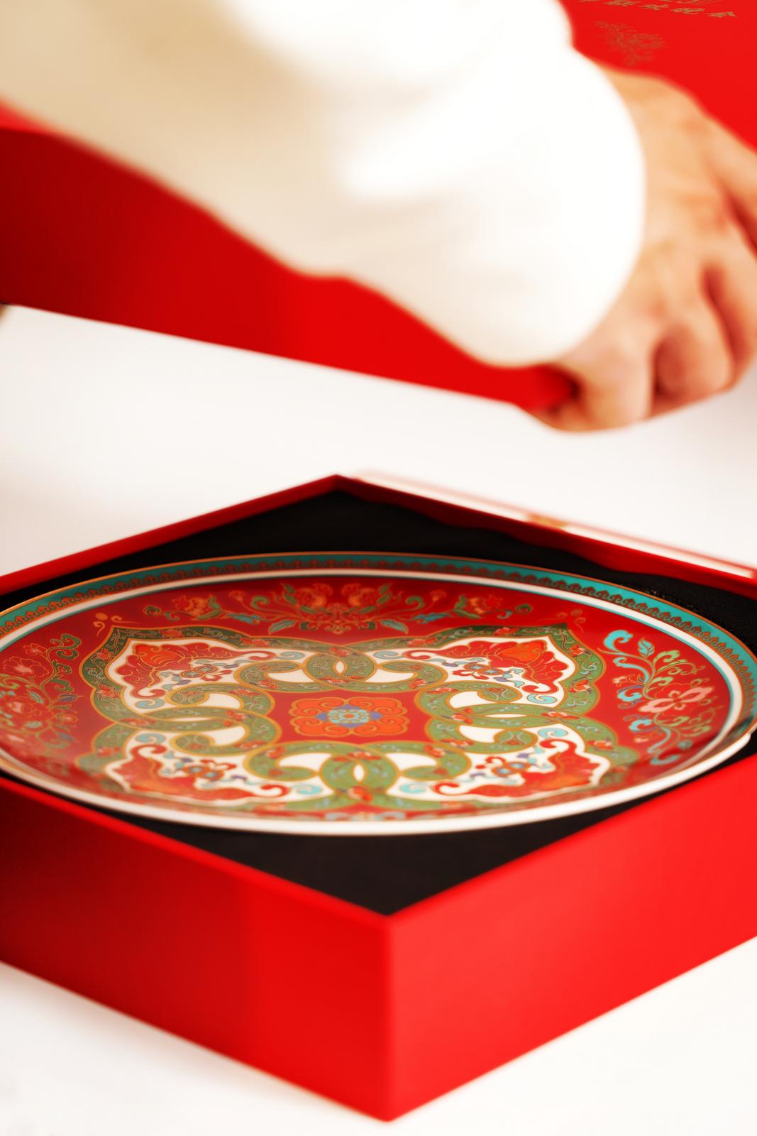 “福满四季摆盘”将生肖蛇与经典的“柿蒂纹”“四合如意”创新组合,配以四季吉祥花卉春海棠、夏牡丹、秋石榴、冬水仙,融入寓意祥瑞的蝙蝠造型,寓意事事如意、福禄四季绵延。“福满四季摆盘”采用方圆构图,象征着天圆地方、天地人和,传递着对中华民族春节团圆、家国一体、幸福美满的深情祝福。