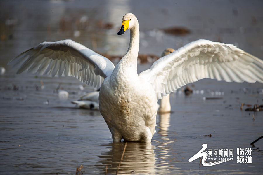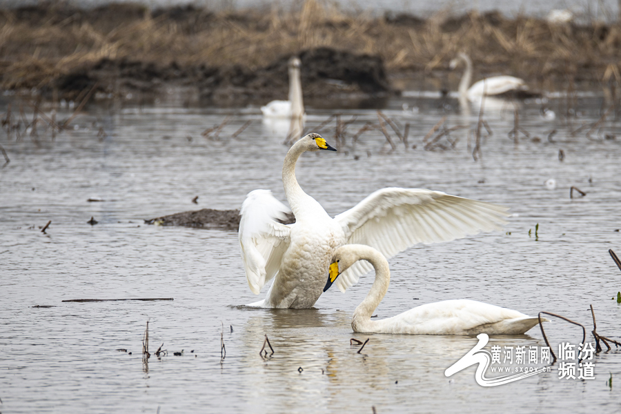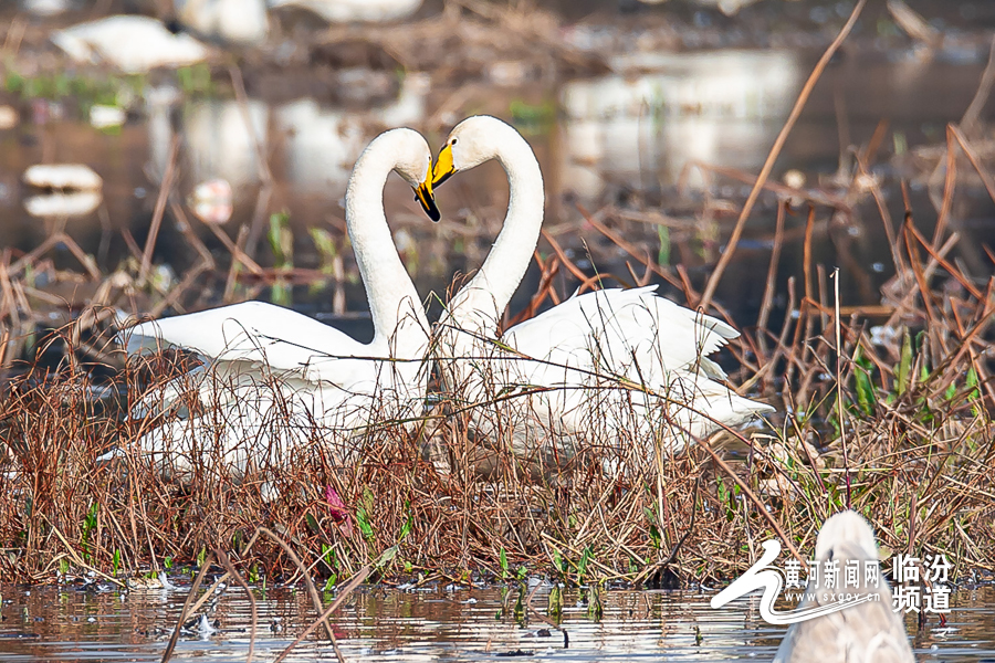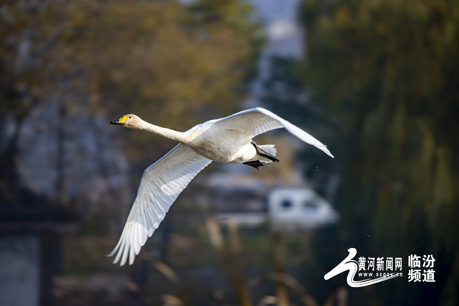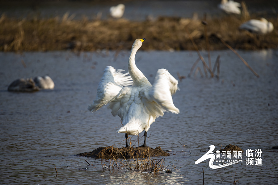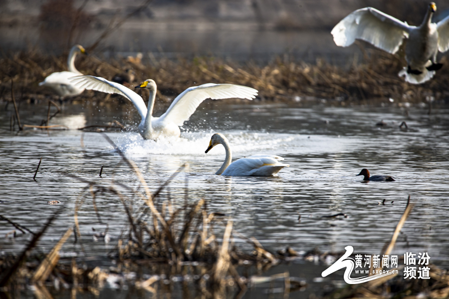 山西日报客户端综合报道 随着候鸟迁徙季节的到来,连日来,南迁的白天鹅相继驻足洪洞汾河国家湿地公园,为秀美汾河平添了无限生机与活力,汾河国家湿地公园天蓝水碧、风光旖旎。过境栖息的白天鹅在河中嬉戏,构成了一幅和谐优美的自然景观。