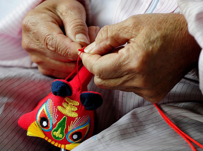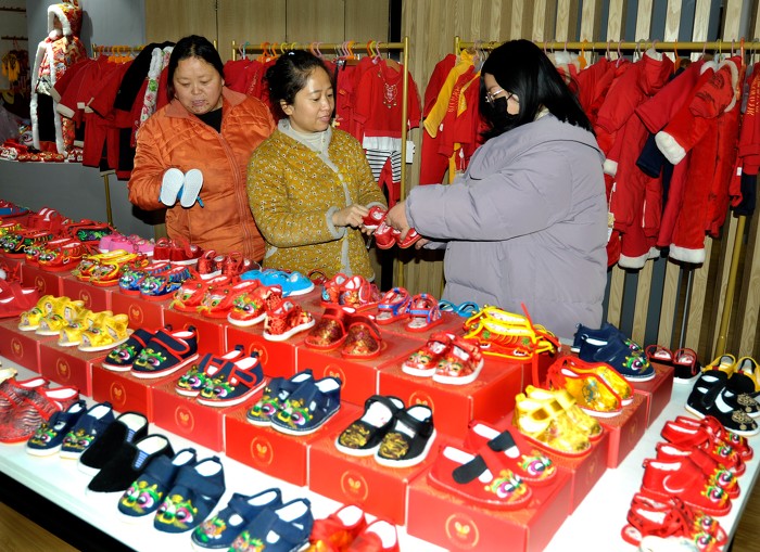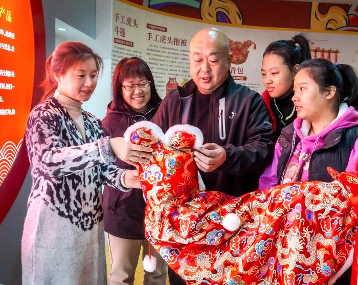 ▲虎头鞋帽、斗篷、包被、肚兜、香包挂件等民俗产品,每年创收百余万元