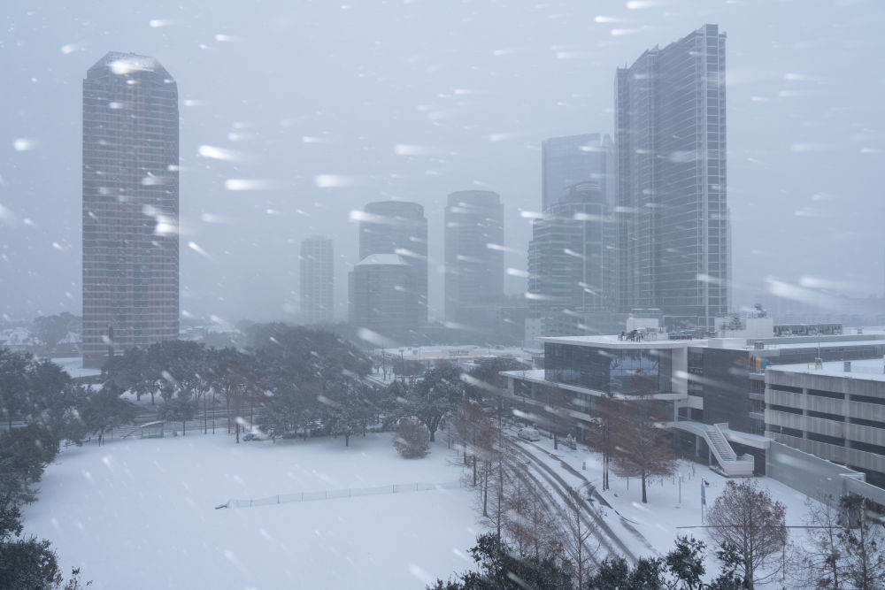 这是1月21日拍摄的冬季风暴中的美国休斯敦市区。新华社发(陈晨摄)
