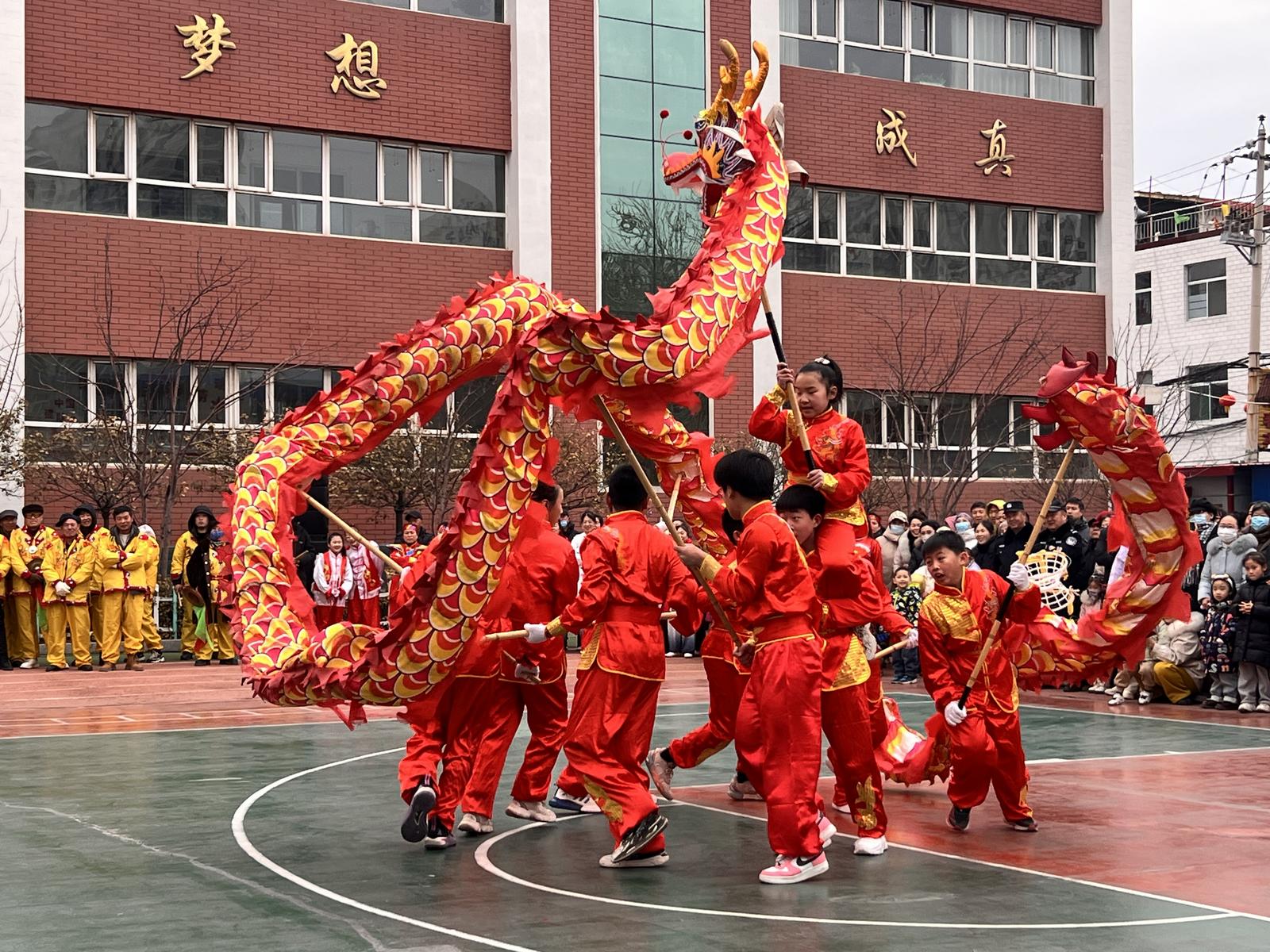 2月11日,百余名表演者在李家庄小学操场准备就绪,表演者们个个神采奕奕,身着喜庆服装,伴随着欢快的锣鼓声,各种民俗表演轮番上演。现场,锣鼓、旱船、舞龙、抬花轿等多个传统文化习俗节目相继演出,表演者们踩着锣鼓点,舞步轻盈,动作舒缓,交叉舞跑,把一个个传统经典故事演绎的淋漓尽致,以“接地气”的表演给现场观众带来了一场喜庆祥和的视听盛宴。