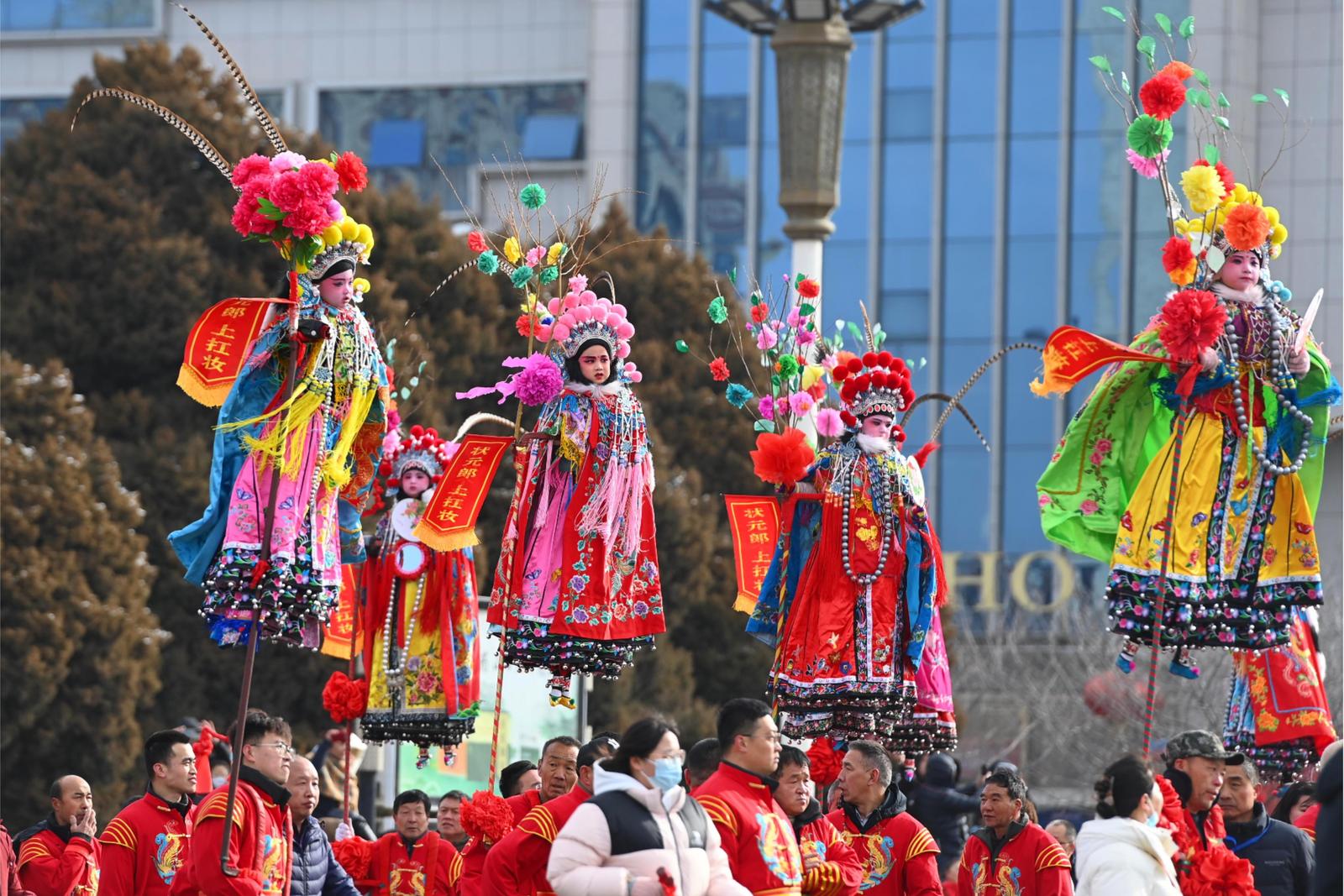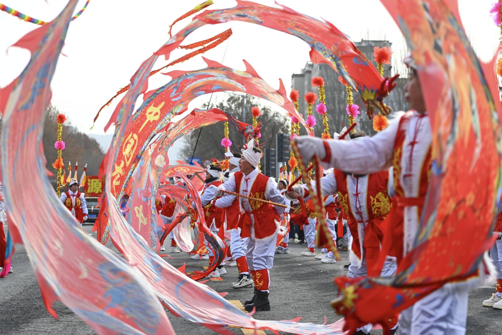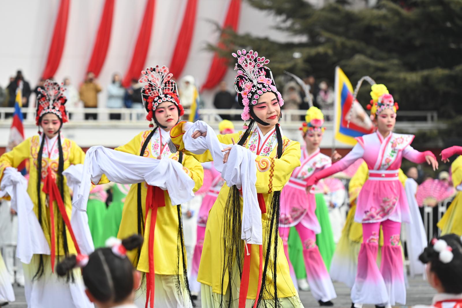 山西日报记者杨晨玉 申晋光报道 2月12日,长治市金蛇狂舞闹元宵民间非遗文艺展演活动在潞州区八一广场举行,现场锣鼓喧天,热闹非凡,吸引众多市民前来观看。展演内容形式多样,包括舞龙、舞狮、秧歌、戏舞、踩高跷、跑旱船、扛妆、晃杠、威风锣鼓、瞪眼家伙等民俗社火非遗文艺节目。