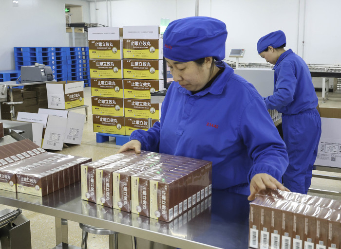 2月15日,在位于万荣县的山西华康药业股份有限公司中成药精制丸自动化生产线上,工人们开足马力批量生产获评“山西精品”的止嗽立效丸药品。该公司年销售收入上亿元的止嗽立效丸被评定为2024年的“山西精品”后,今年订单猛增。为满足市场供货需求,工人们春节后实行三班倒,坚持每天24小时生产,实现日产止嗽立效丸药品15万盒,确保完成全国各地订单。
