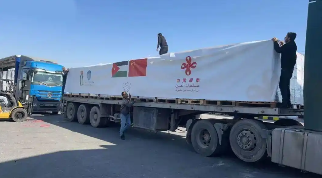 当地时间18日,中国援加沙地带紧急人道物资从约旦启运,通过陆路口岸运往加沙地带。此次运送的首批物资约1.2万个食品包。