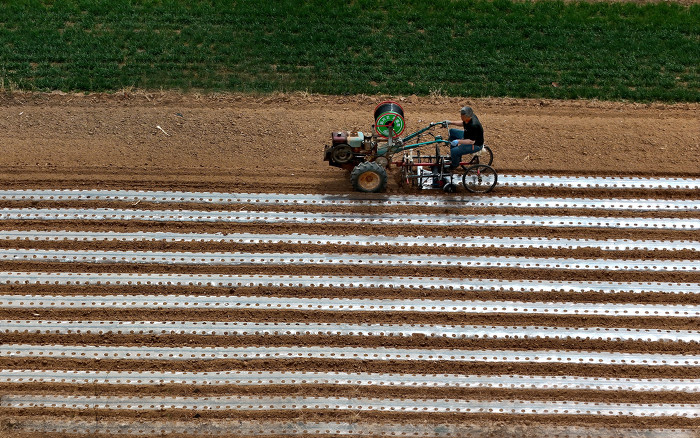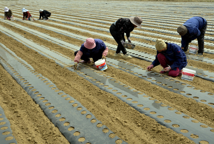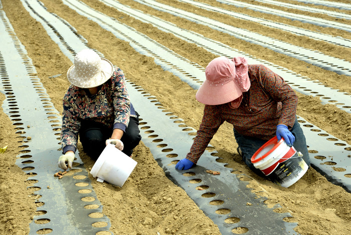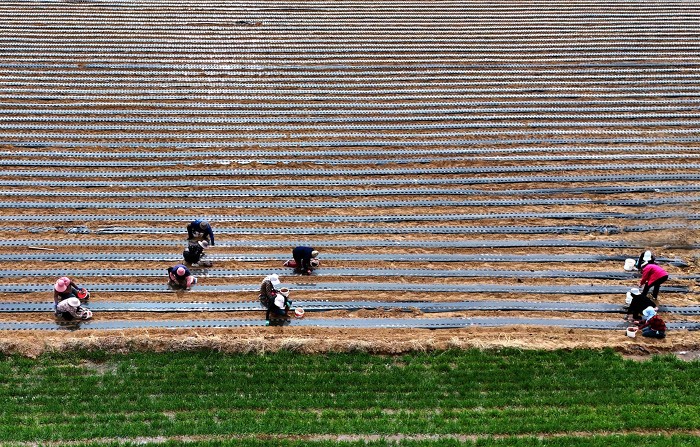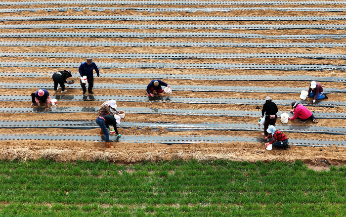 3月26日,万荣县通化镇六毋村村民正在抢抓农时铺地膜保墒、播种药材。眼下正是中药材种植的黄金时期,连日来,六毋村村民正忙着平田整地、挖沟施肥、播种盖土,按下了中药材种植的“快进键”,田间一派繁忙景象。