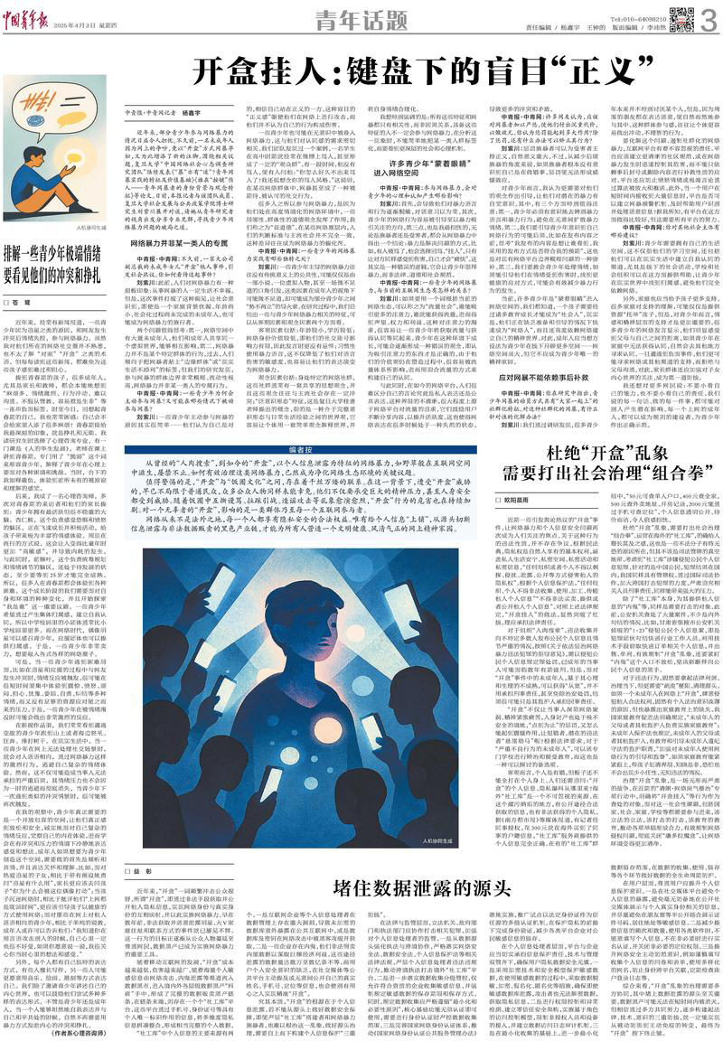 中青报整版聚焦开盒挂人:键盘下的盲目“正义”,如何治理