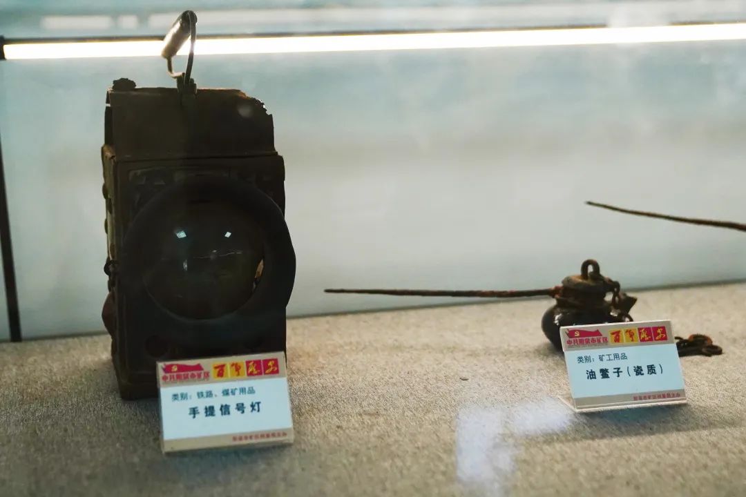 “矿工下井时需将灯把含在口中来照明,方便双手腾出作业。等进入井下后,将尖锐的灯把插入土中,使用灯嘴中灯芯燃烧的光亮进行照明。”讲解员轻触展柜,灯光照在“油鳖子”凹凸不平的金属表面,留下斑驳的光影。旁边展出的还有另一种材质的瓷质“油鳖子”,比铁质的要小一些。