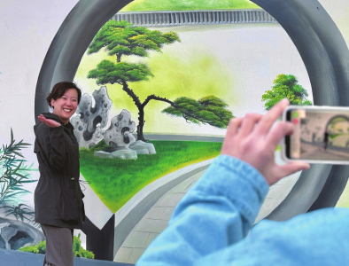 山西日报记者王瑞瑞报道 3月31日,太原市万柏林区九院新村,妙趣横生的特色墙绘成为乡村一道亮丽的风景线,吸引市民游客合影留念。该村因地制宜升级打造消费体验新场景,为游客带来全新的游玩体验。