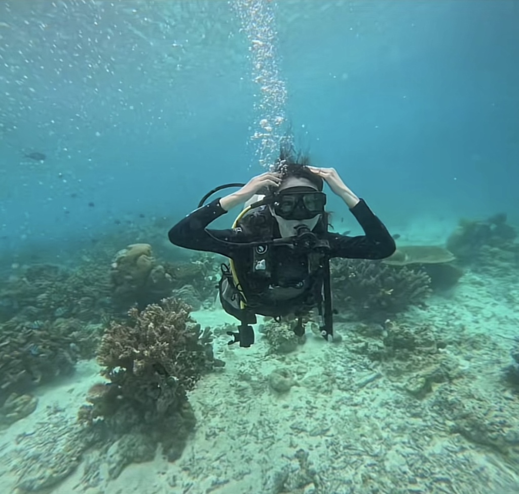 解岳千独自在天津的生活看上去过得很丰富。孙源说,除了潜水员证,千千还有摩托车驾照。她晒过自己坐在漆黑锃亮的摩托车上的照片,金发的她酷酷地握住把手。