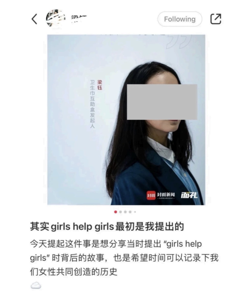 一些分歧本该在公益活动之初就展现出来。但几位前志愿者回忆,当她们感到梁钰派的任务不合理,无法实现平等的“全女公益”,很快滑向自我安慰:“只要卫生巾能送到山区的妹妹手里就行了。”在志愿工作的忙碌中,她们逐渐工具化地看待“予她同行”和自己。