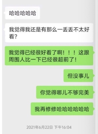 她说,自己留过长发,但大学刚毕业去生产女包的公司上班,在营销部门工作,设计部的同事总来打量她的穿着,据以把产品设计风格“做到极致”——娇小而柔嫩的。她并不喜欢,感到自己被当作能“复制”的花瓶,但换一家公司也还是这样,直到她改变自己的外表。