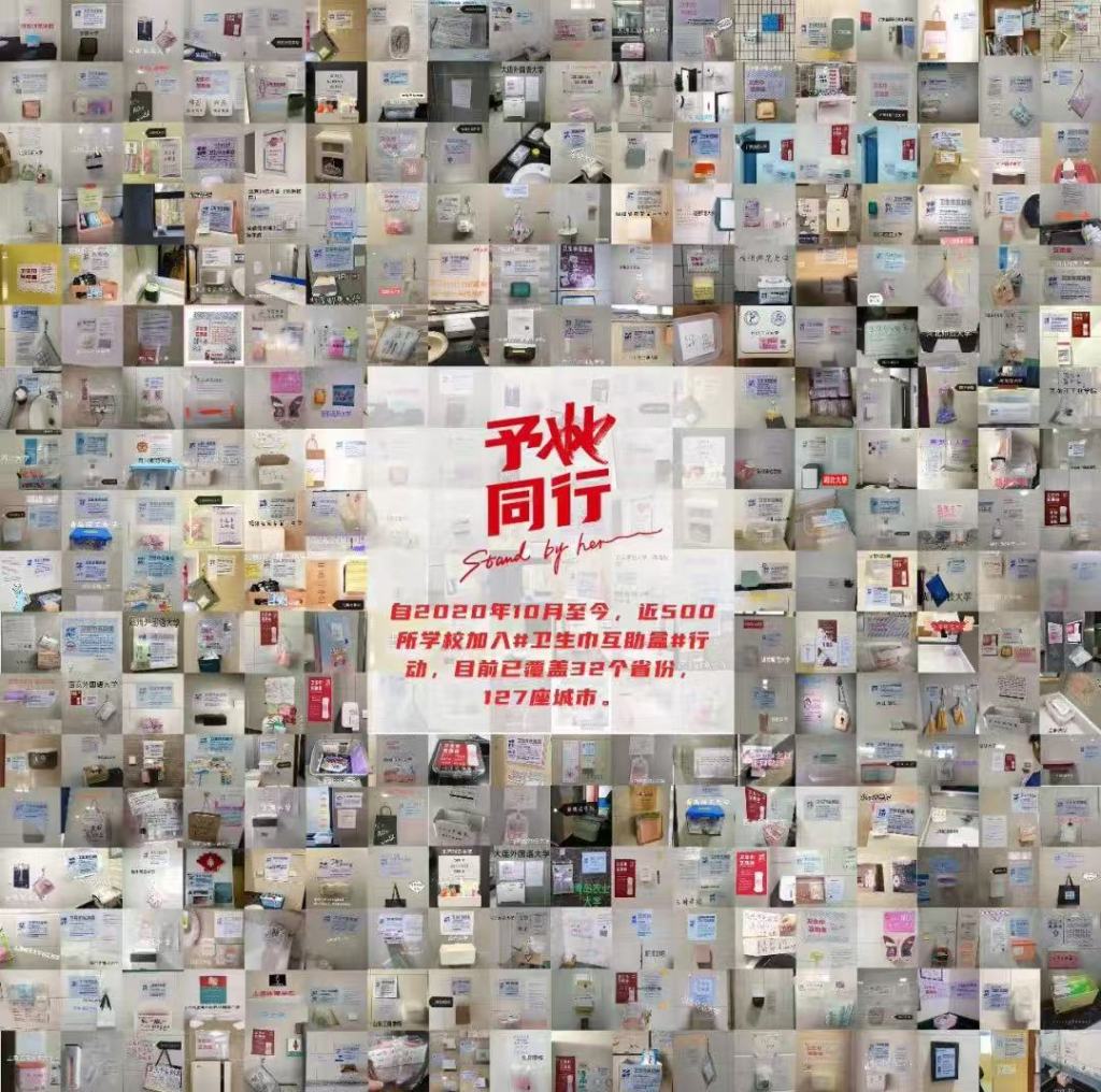 “予她同行”在微博中表示,“卫生巾互助盒”活动开展以来,有近500所学校加入。
