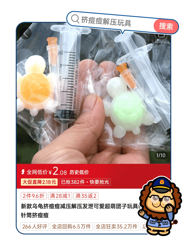 在多个购物平台,搜“挤痘痘解压玩具”,前几名销量均已过万。包装袋内装有针头、非医用针管,是解压神器,还是安全隐患?