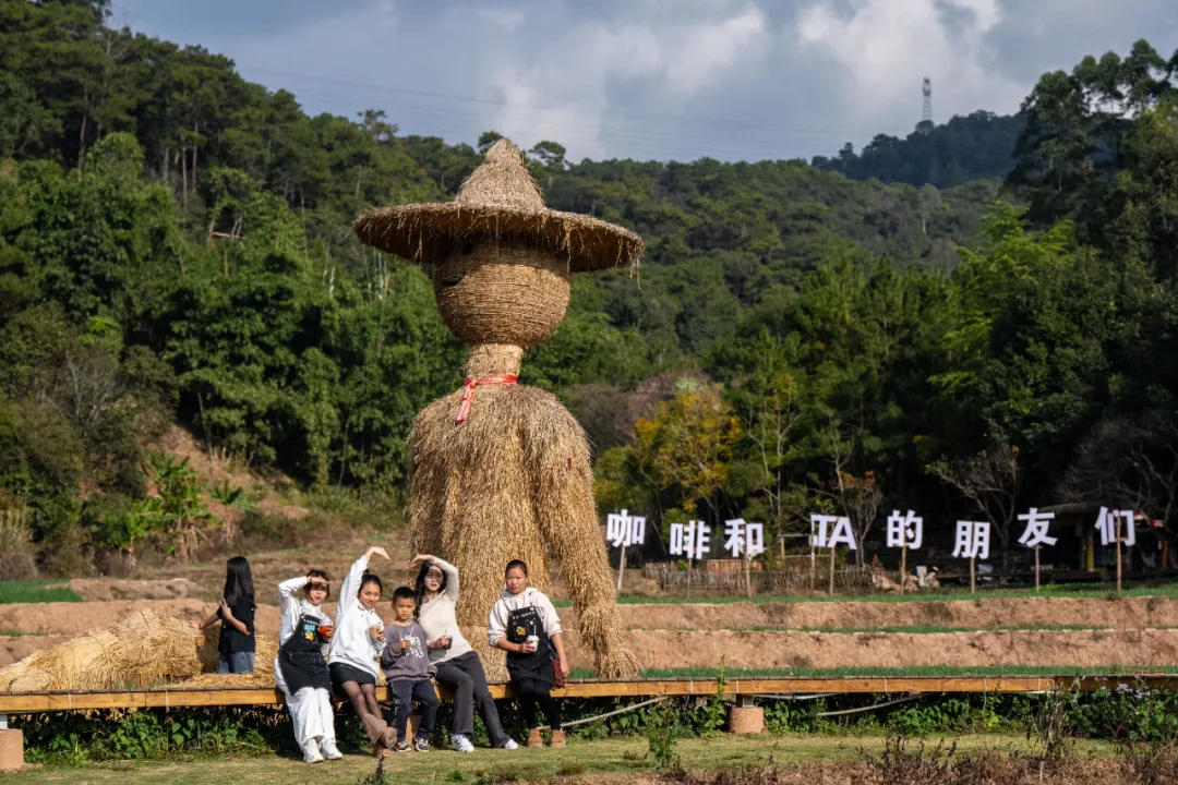 在云南省普洱市思茅区一家户外咖啡馆,游客和工作人员合影留念 胡超 摄