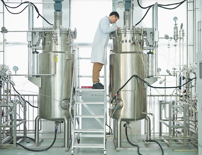 盈嘉合生研究人员查看发酵罐的发酵情况。资料图片