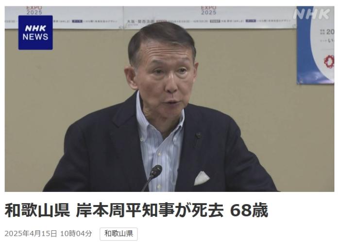 山西日报客户端综合报道 据日本广播协会(NHK)报道,当地时间15日,日本和歌山县知事岸本周平去世。一天前,他在位于和歌山市内的知事官邸被发现倒在地上,随后被送往医院。