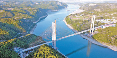 该桥全长917.45米,主跨420米,实现一跨飞越汉江,是国内最大跨度梁桁组合结构斜拉桥。